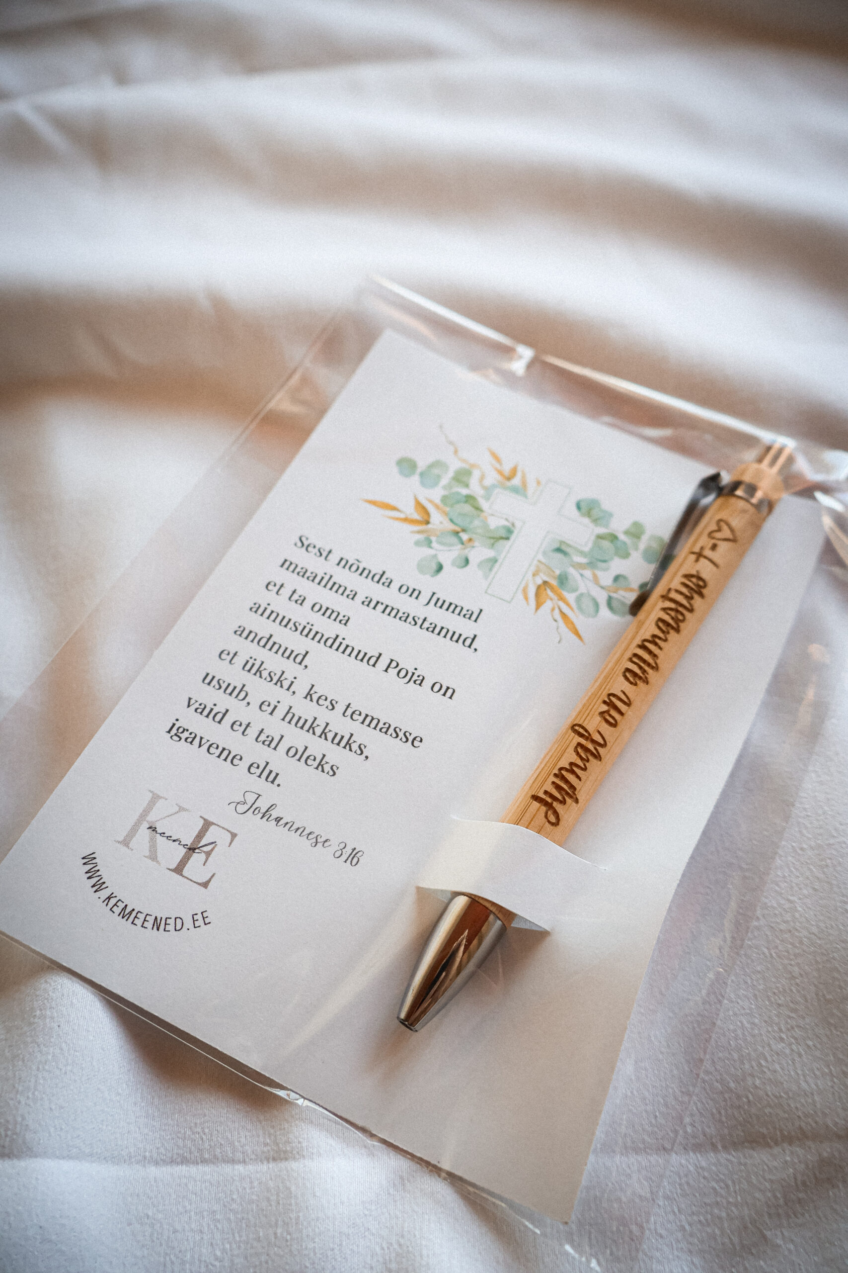 Graveeringuga pastakas, mis tuletab meelde Jumala armastust meie vastu.